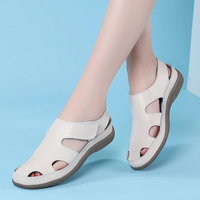 Tillverkad Med Äkta Läder, Alvis Women'S Flats Sandal Har Inte Bara Ett Elegant Och Klassiskt Utseende Utan Lovar Också Bekvämt Att Bära. Den Öppna Sidostången Och Designen På Fram- Och Bakremmen Ger En Säker Passform, Medan Gummiyttersulan Och Kardborrstängningen Säkerställer Stabilitet Och Bekvämlighet.