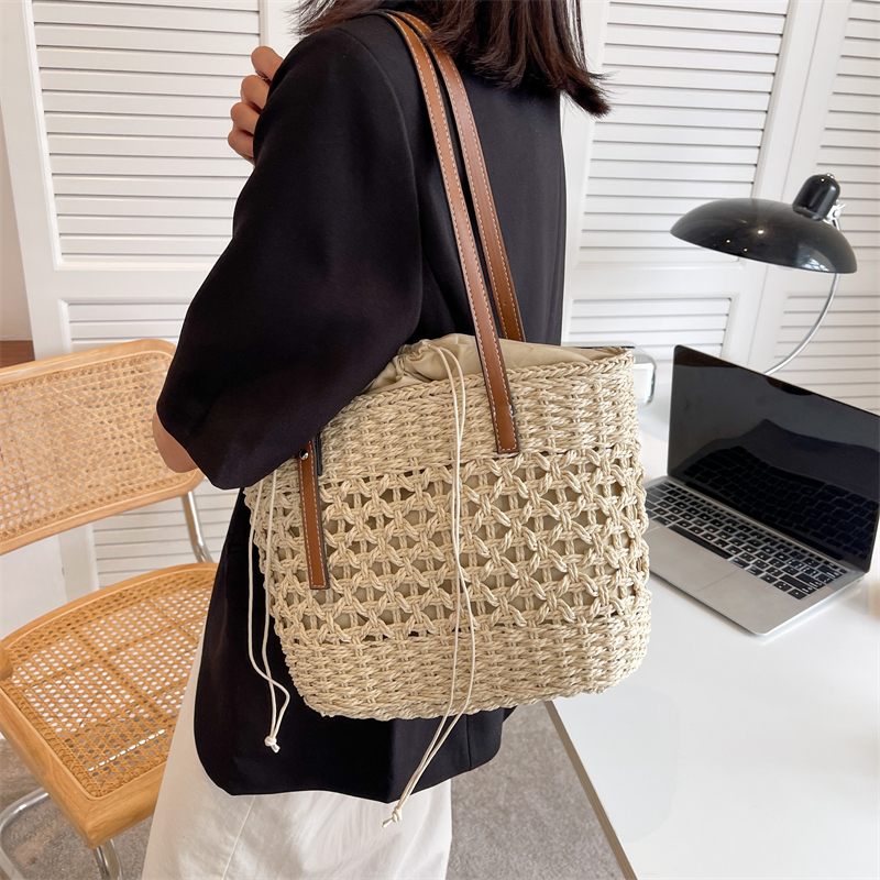 Amaya Handväska Med Stor Stråstrandhink För Kvinnor