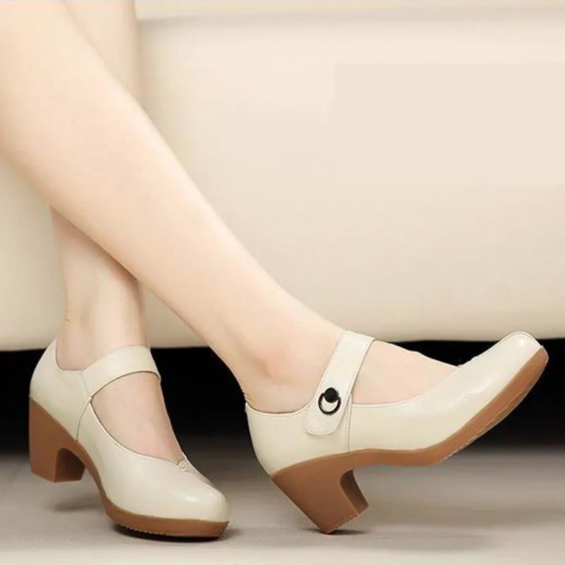 Cinnia Dampumpar Är Tillverkade Av Högkvalitativt Äkta Läder För Överlägsen Komfort Och Hållbarhet. Pumparna Har En Rund Tå, Innersula I Fullnarvt Läder Och En 2-Tums Fyrkantig Häl För Stabilitet Och Varaktigt Stöd. Den Eleganta Kardborre- Och Ögle- Och Metalldekorationen Erbjuder Den Perfekta Blandningen Av Mode Och Stil. Passar Storleksanpassat.